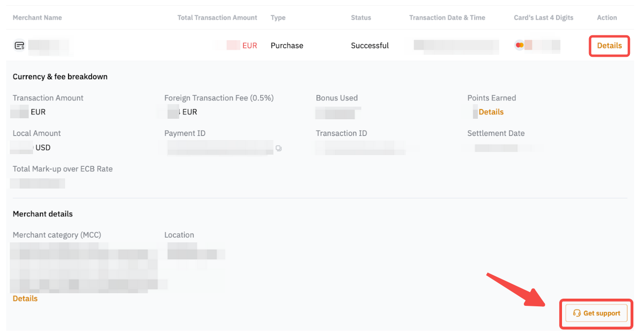 Step 1: Log in to your account and click Bybit Card. Scroll down to Recent Transactions, then click Details Get support.