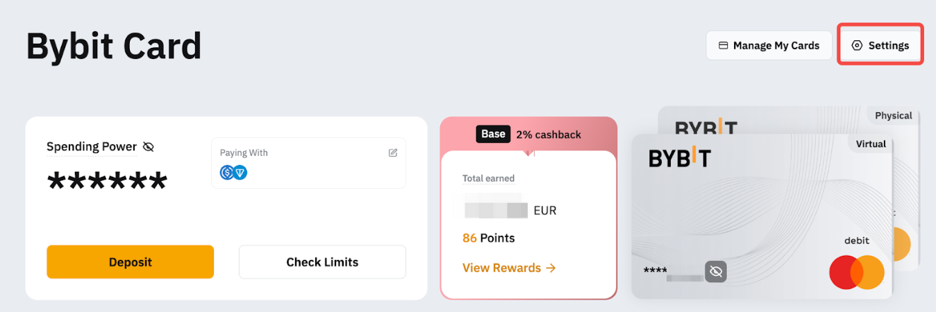 Step 1: Go to the My Bybit Card page and click on Settings.
