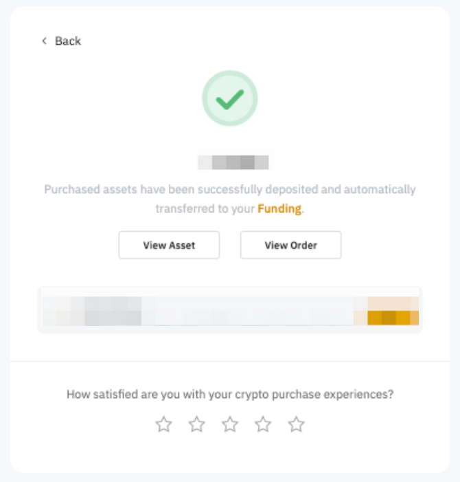 Schritt 5: Ihre Transaktion ist abgeschlossen. Die Münze wird innerhalb von 1–2 Minuten auf Ihr Finanzierungskonto eingezahlt.