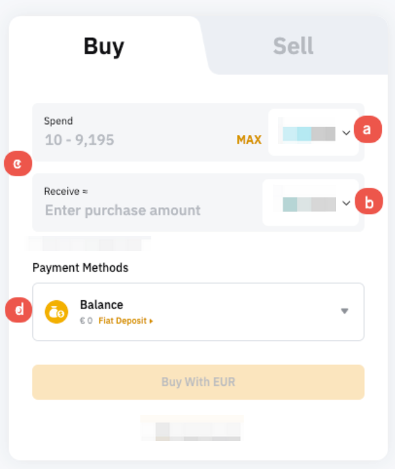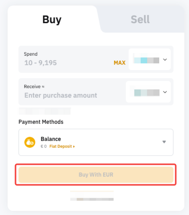 A. Wählen Sie die Fiat-Währung — EUR — die Sie einzahlen möchten.