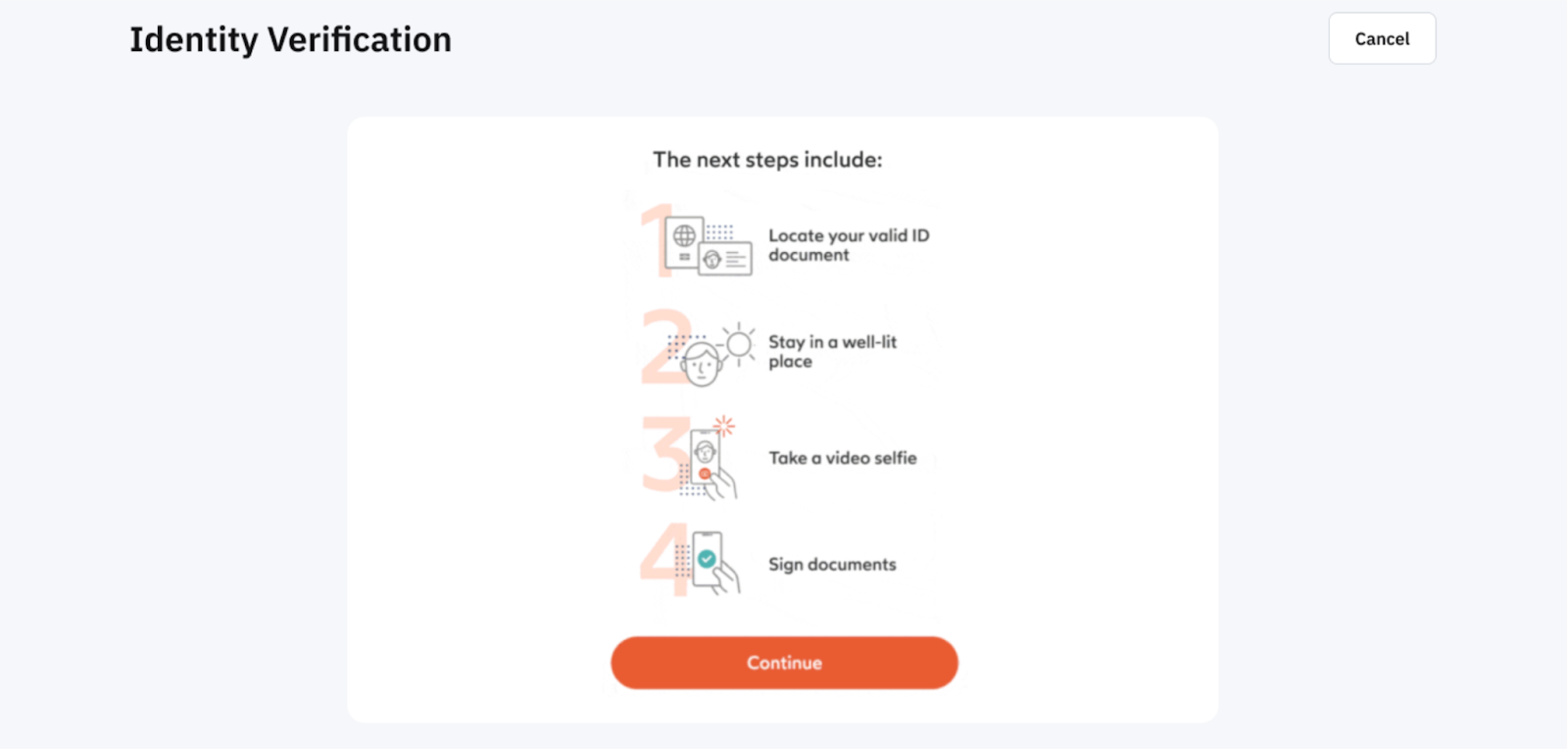 Wenn du mit der Schnellverifizierung fortfährst, musst du deine Identität verifizieren, den Selfie-Liveness-Check durchführen und die erforderlichen Vereinbarungen unterzeichnen.
