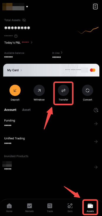 Schritt 1 : Kannst du zur Seite Assets gehen und auf Transfer tippen, um zur Übertragungsseite weitergeleitet zu werden.