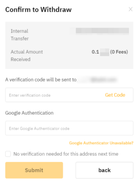 Schritt 4: Klicken Sie auf Einreichen und Sie werden zur Seite zur Auszahlungsbestätigung weitergeleitet. Die folgenden beiden Verifizierungsschritte – E-Mail-Verifizierung und Google-Authentifizierung – sind erforderlich, wenn Ihre E-Mail-Adresse und/oder Handynummer noch nicht verifiziert sind. Weitere Informationen zur Verwaltung Ihrer Auszahlungssicherheit finden Sie unter diese Seite.