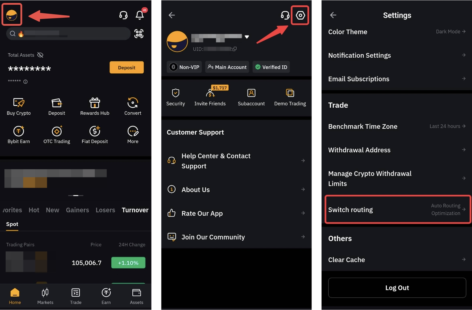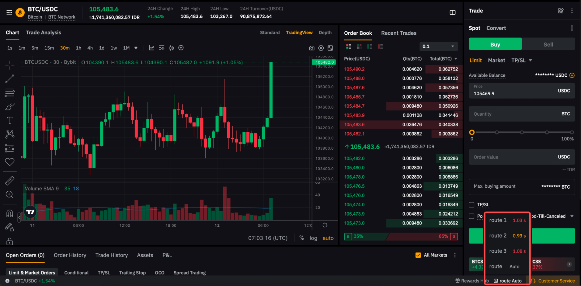 Wenn Sie kein VPN verwenden oder es bereits deaktiviert ist, überprüfen Sie bitte, ob Ihre Verbindung schnell, zuverlässig und sicher ist. Sie können das Routing-System von Bybit EU überprüfen, das die Internetverbindung in der unteren rechten Ecke Ihres Bybit EU Handelsseite.
