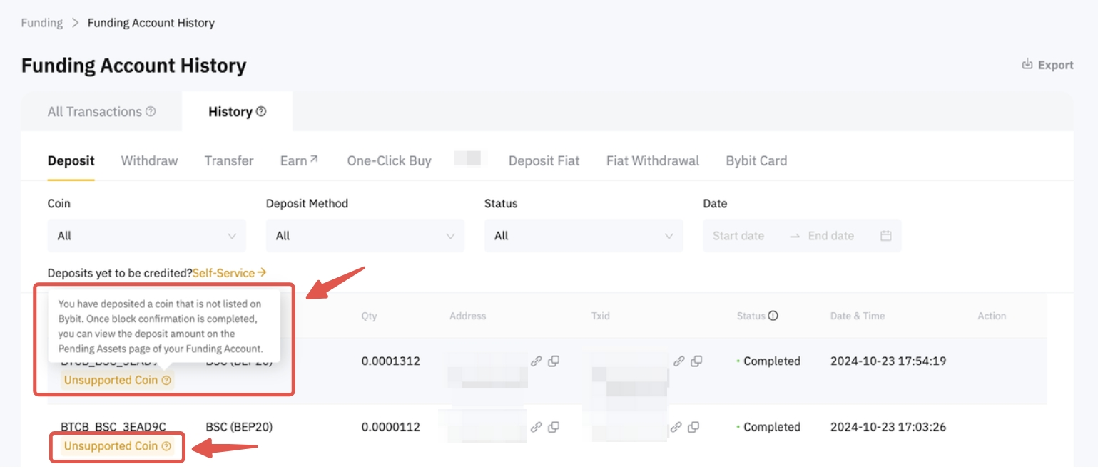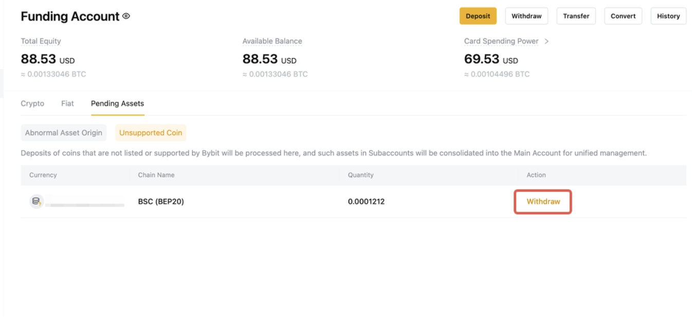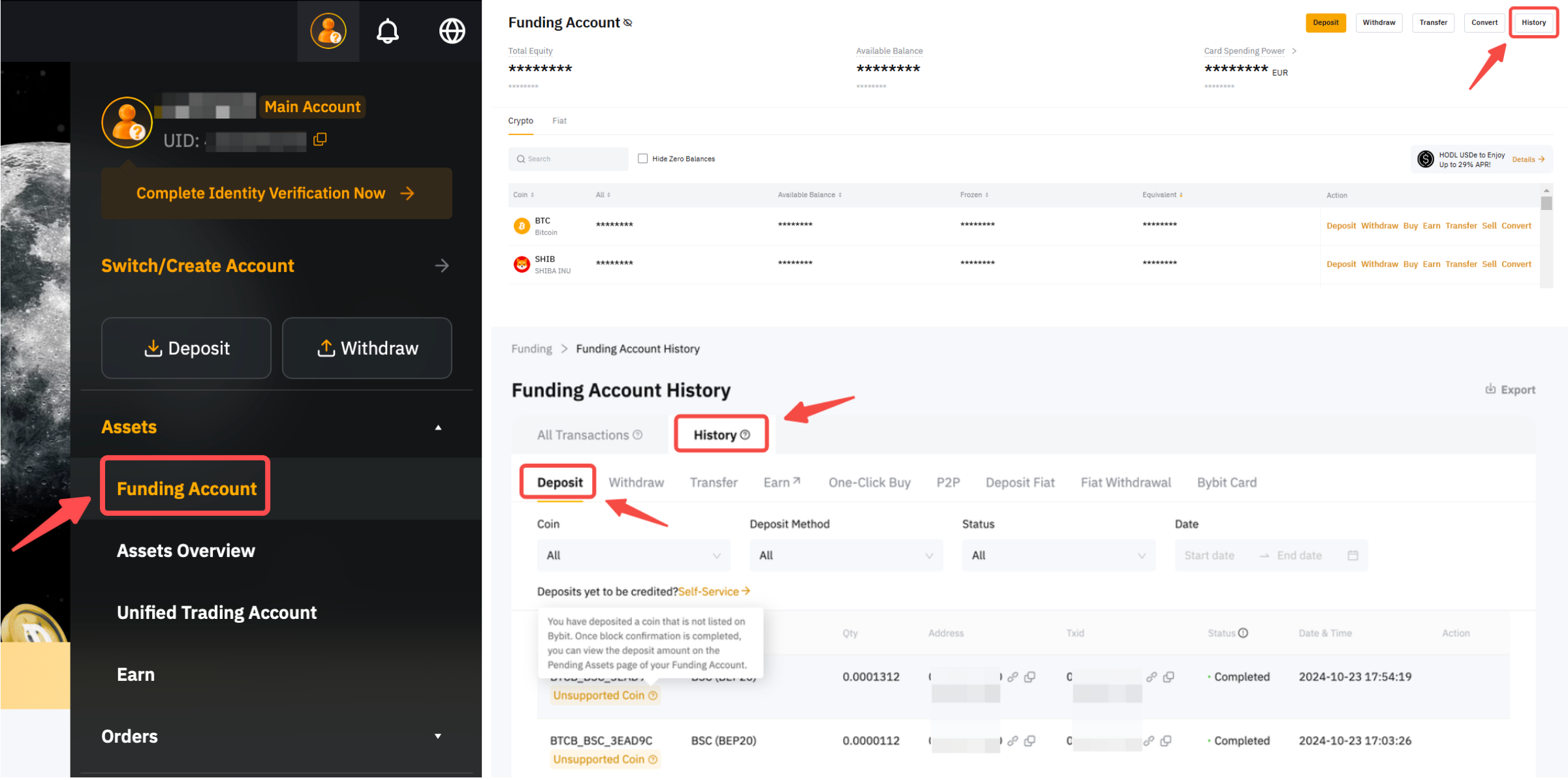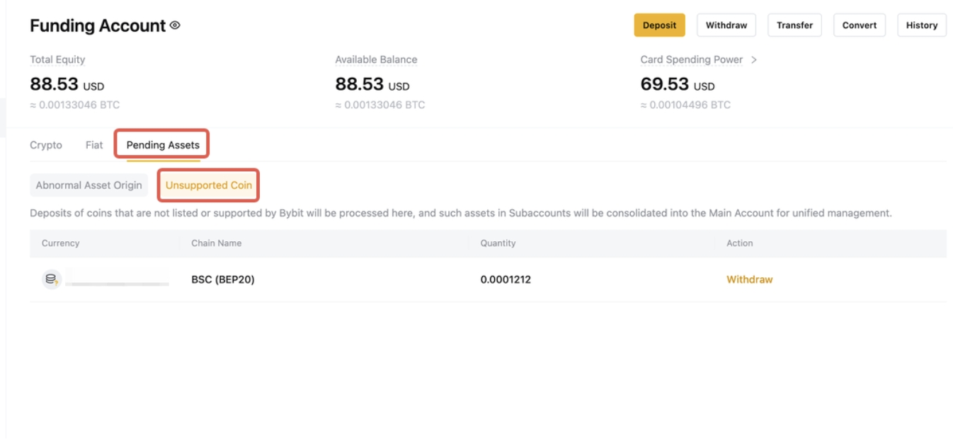 Wenn nicht unterstützte Münzen versehentlich in Ihr Bybit EU-Wallet eingezahlt werden, können Sie eine Wiederherstellung wie folgt versuchen: