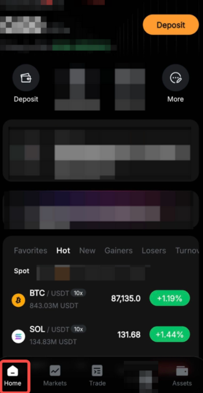 Step 1: Launch the Bybit EU App. At the bottom left corner, select Home.