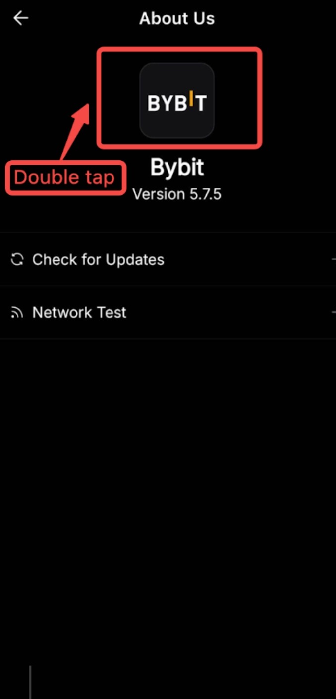 Step 5: To check more information about the App version, you can double-tap the Bybit EU Logo and you should see more info about the App.