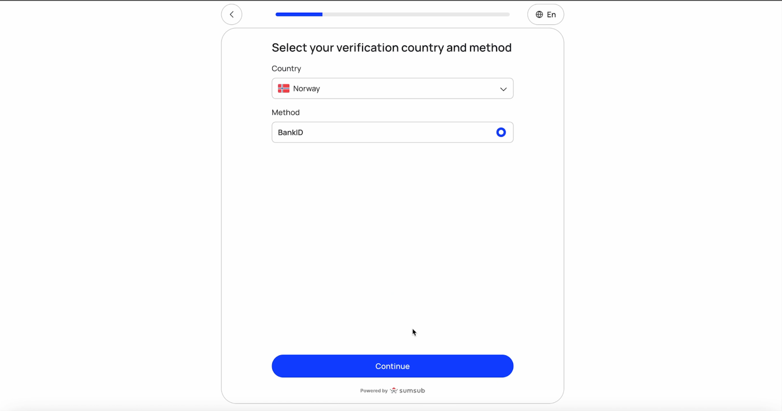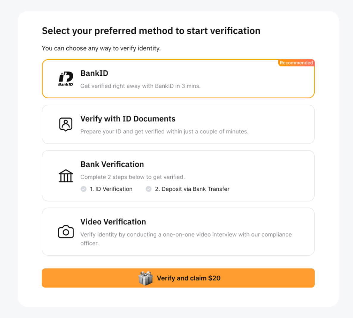 Step 1: Select BankID as your verification method.