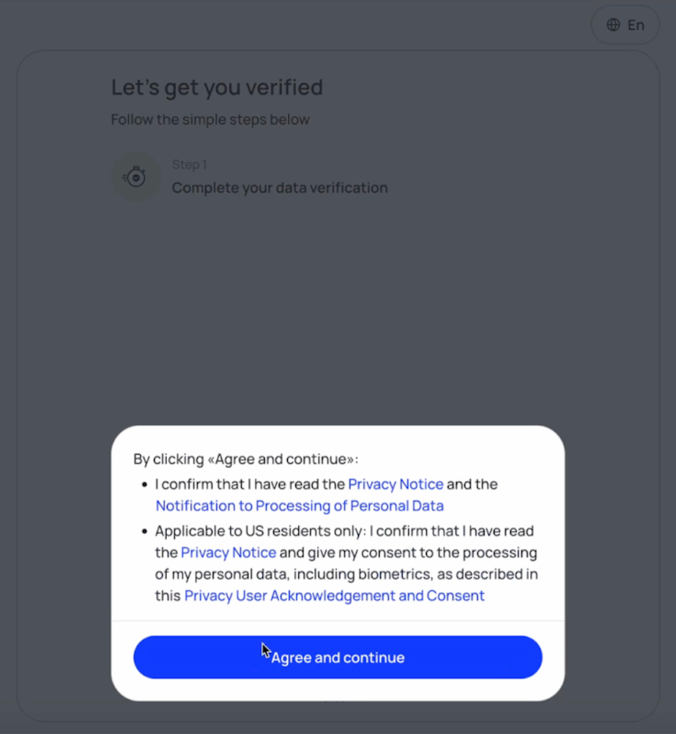 Step 2: Tap Continue → Agree and continue to begin the verification process.
