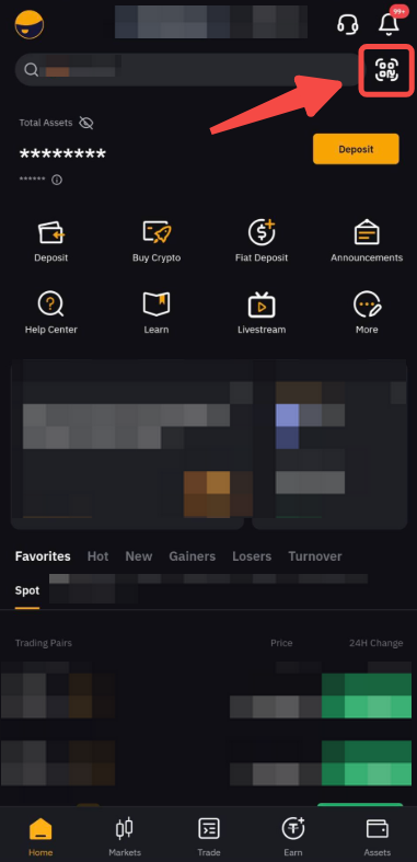 Step 2: Open the Bybit EU app and tap the QR code scanner icon in the upper right corner. Please make sure you are logged in to your Bybit EU app.