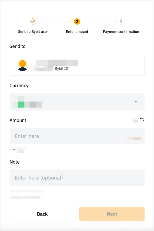 Step 2: Select the type of method for the internal transfer payment. You can send the payment to other Bybit Pay users by entering their:
