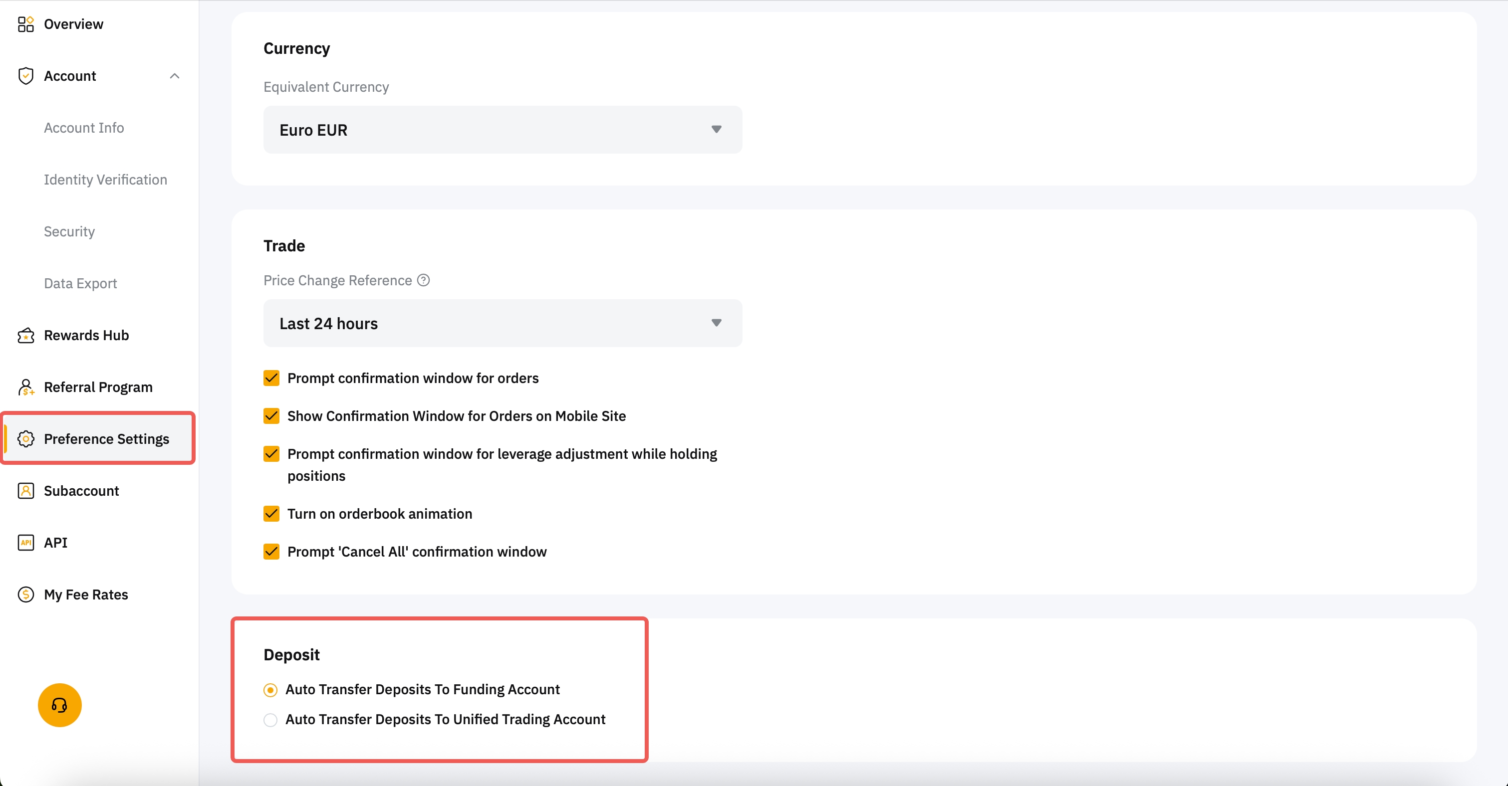 1. Select Deposits auto channeled to your Unified Trading Account.