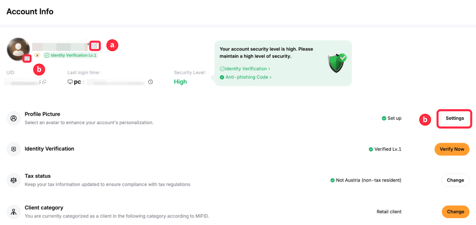 You can find a step-by-step guide below to update your nickname, profile picture, currency display, and notification language on your account.
