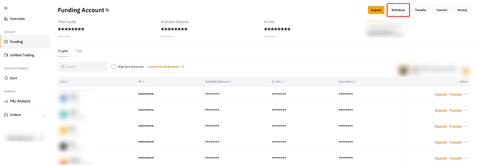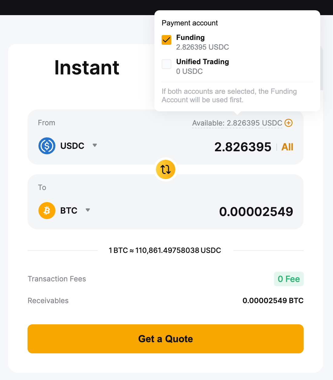 Alternatively, you can access Convert directly from the Funding Account or Unified Trading Account page.