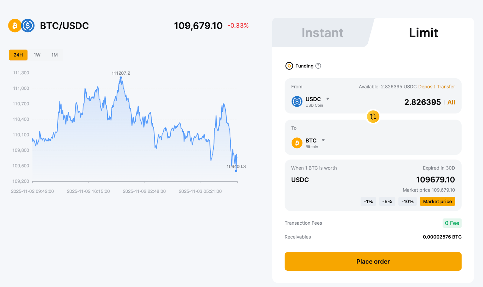 — Limit orders can only be placed from the Funding Account. If your assets are in another account, you are required to transfer them to the Funding Account before proceeding.