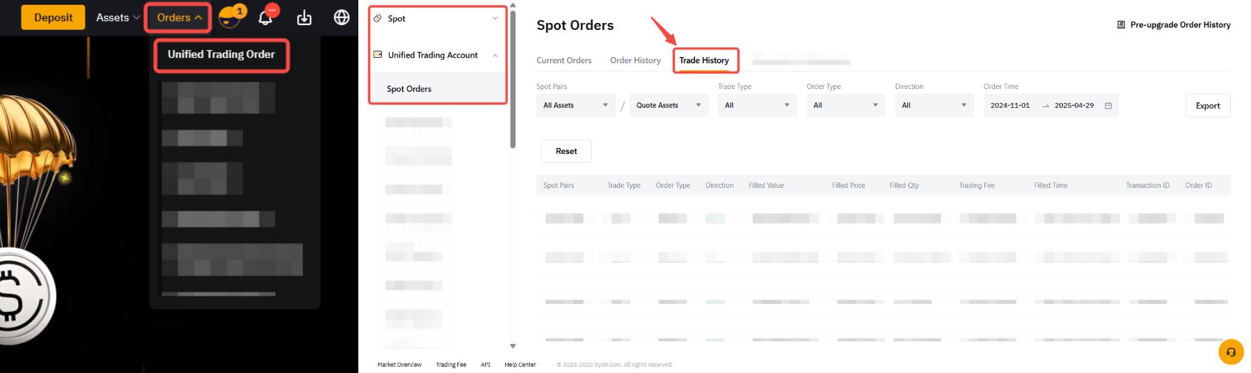 The Trade History records the transaction details of all your executed orders and trading fees paid/collected.