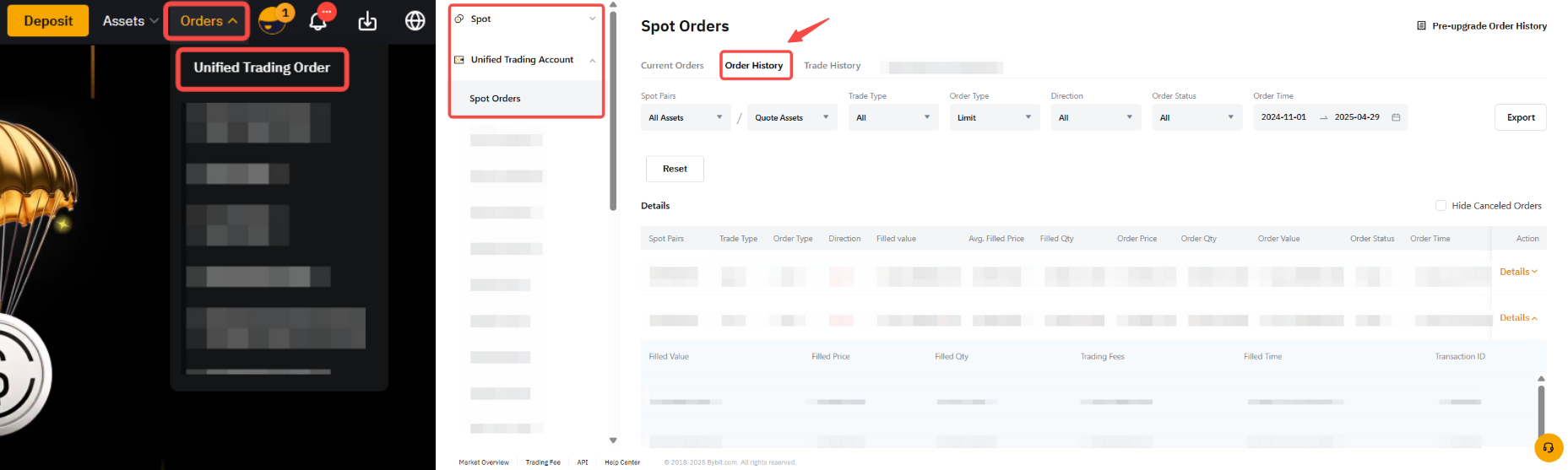 The Order History records the transaction of your order status and orders details for all your trades, including all cancelled limit and conditional orders.