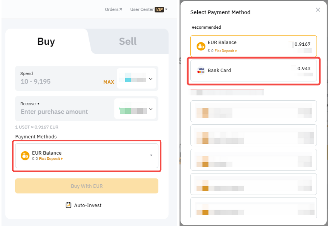 4. Select Bank Card as the payment details. You will see an estimated conversion rate for each payment method available (refreshed every 30 seconds).