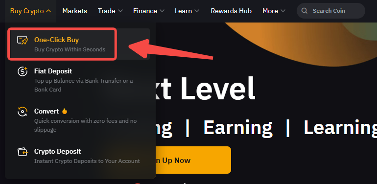 Step 1: Click on Buy Crypto → One-Click Buy on the top left corner of the navigation bar to enter the One-Click Buy page.