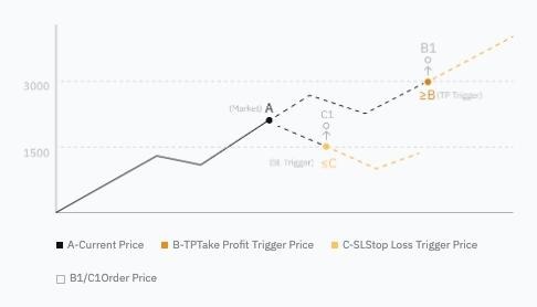 - Ordres conditionnels simultanés: Les traders peuvent définir simultanément des ordres stop loss conditionnels de marché ou limite pour un seul actif. Par exemple, vous pouvez placer un ordre stop loss conditionnel au marché et un ordre take profit conditionnel limite pour le même actif. Les exigences de marge sont calculées sur la base du même montant d’actif.
