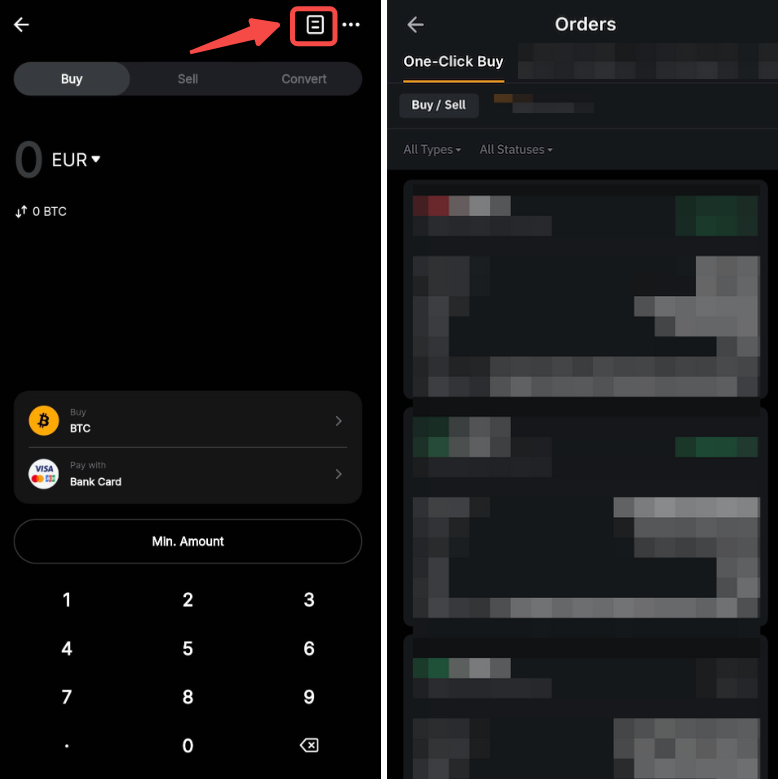 Sull’App, vai alla Home → tocca Altro → Acquista Crypto → clicca sull’icona a forma di carta situata nell’angolo in alto a destra.