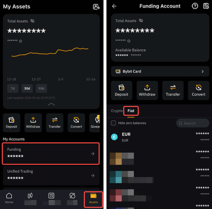 Sul sito web, fai clic su Asset → Account di finanziamento per visualizzare la moneta acquistata.