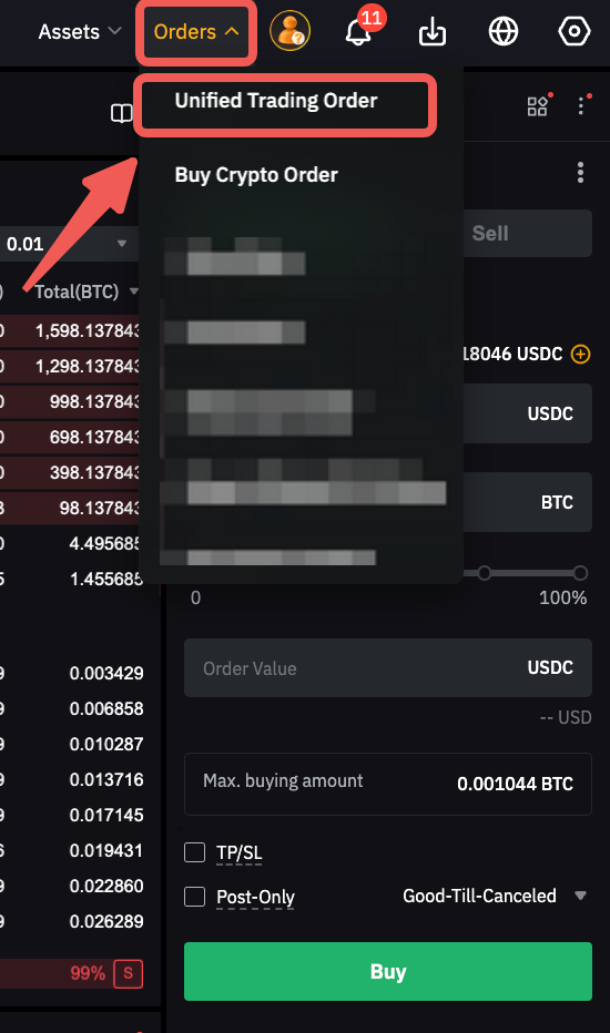 Sul sito web di Bybit EU: clicca su Ordini → Ordine di trading unificato per accedere alla cronologia.
