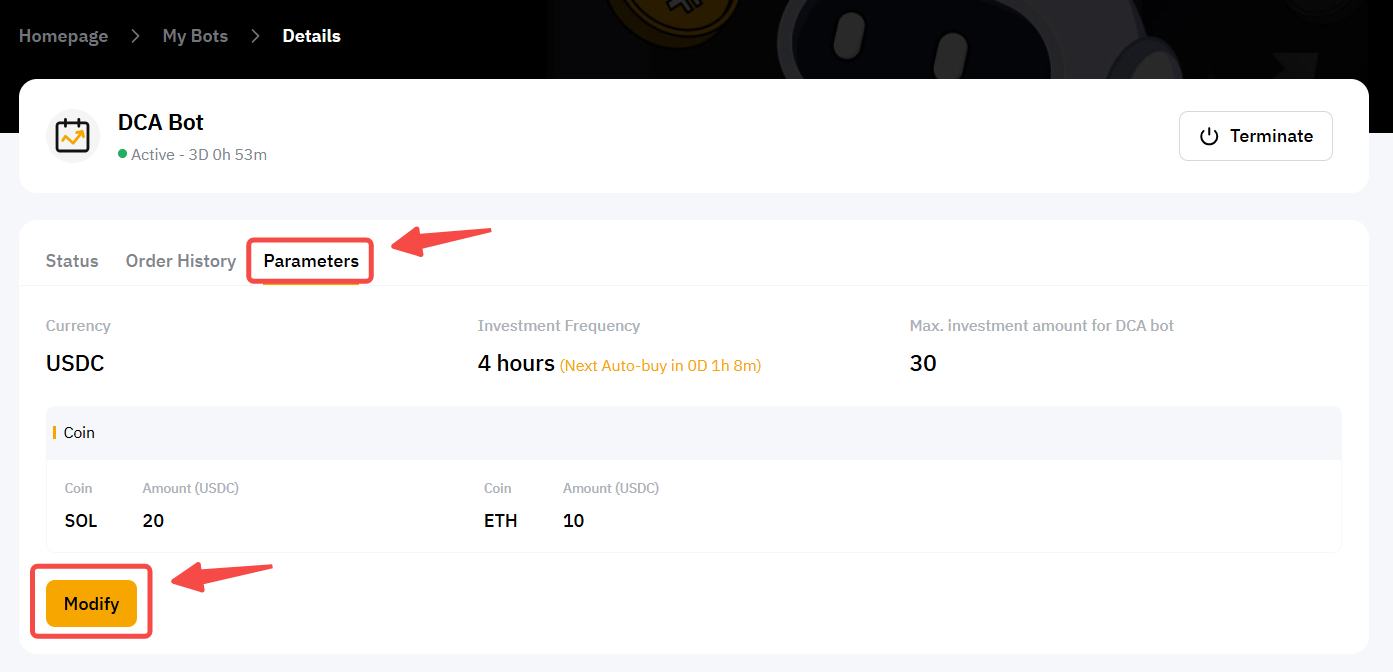 Modify DCA Bot Parameters