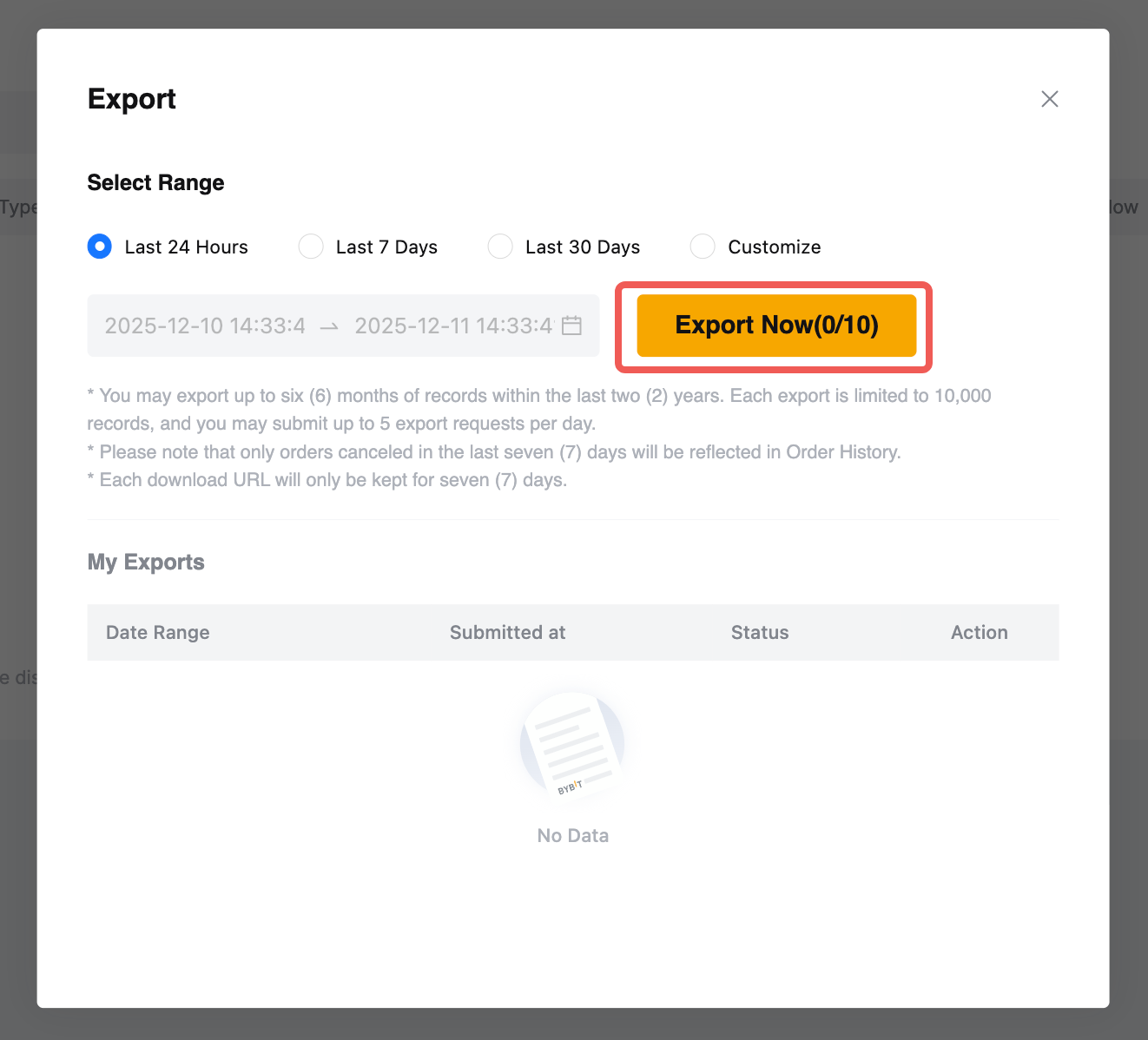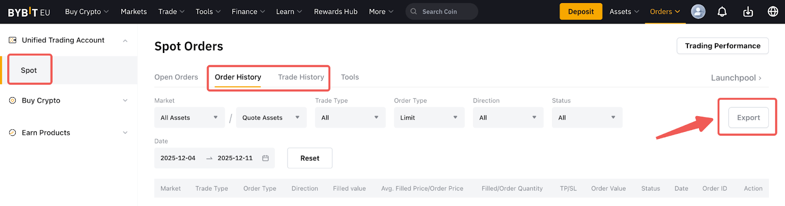 Ecco una guida su come esportare i dati del tuo account su Bybit EU, che include scambi, ordini, attività e cronologia dell'account. Si prega di notare che la funzione di esportazione dei dati dell'account non è disponibile sull'app Bybit EU.