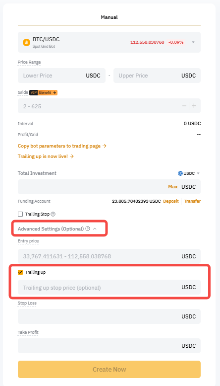 How to Enable Trailing Up in Spot Grid Bot