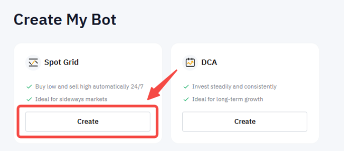Step 1: Go to the Bybit EU Trading Bot page and click Create in the Spot Grid section.
