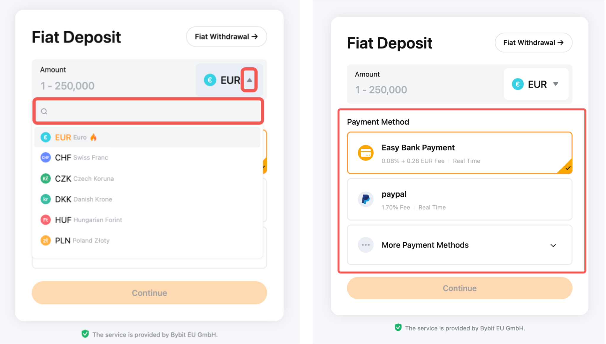 Bybit EU supports the deposit of various fiat currencies and offers multiple payment methods. Before proceeding to make a fiat deposit, please take note of the following: