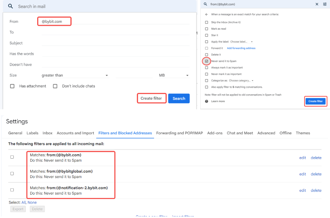Stap 2: Whitelist onze Bybit EU e-mail adressen om een succesvolle ontvangst van de e-mail te garanderen. Klik voor de lijst met e-mailadressen op hier.