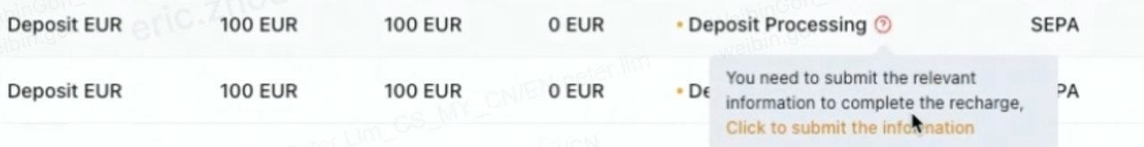 Wanneer een terugbetaling vereist is, moet je de terugbetalingsgegevens indienen op de pagina 'Crypto kopen-orders' (Buy Crypto Order) → Fiat-storting → beweeg de muis over 'Terugbetaling wordt verwerkt' en klik op 'Verzenden' (Submit). Als alternatief kun je het indieningsportaal ook hier vinden. Volg de instructies en dien de relevante documenten in; deze zullen binnen 48 uur worden beoordeeld. Vervolgens duurt het terugbetalingsproces ongeveer 7-14 werkdagen voordat de bank de terugbetaling heeft voltooid.