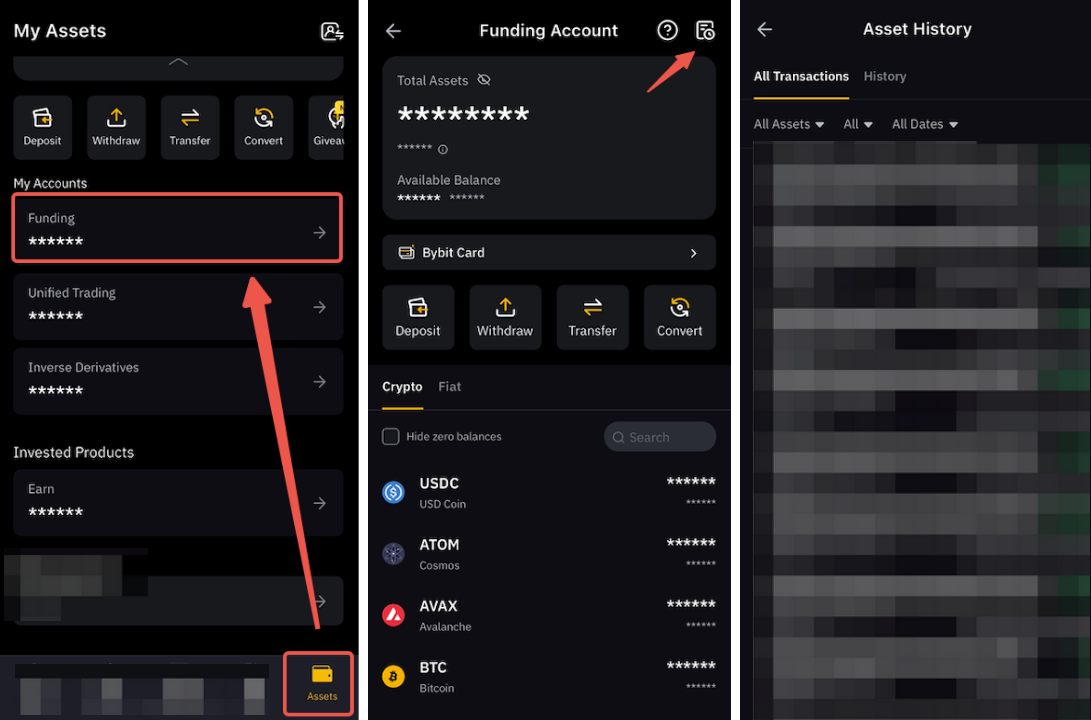 Omdat de cashback wordt bijgeschreven op je financieringsaccount, kun je het relevante stortingsrecord ook terugvinden in je financieringsaccount geschiedenis door naar het Activa → Financieringsaccount → Geschiedenis pictogram te gaan.
