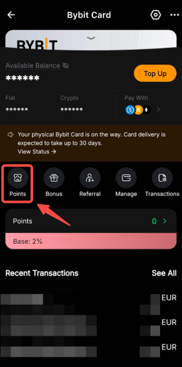 Stap 1: Tik op Points in de sectie Bybit Card om de Rewards Market te openen.