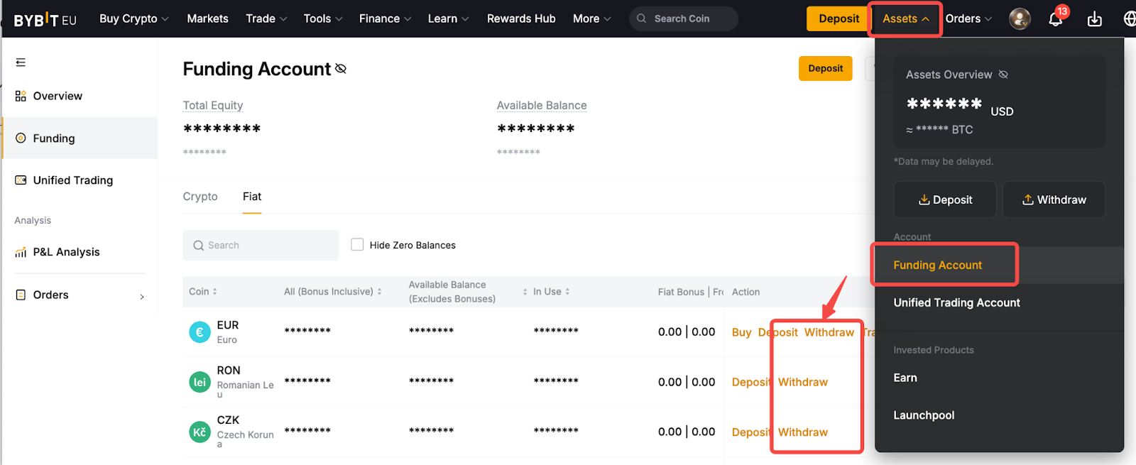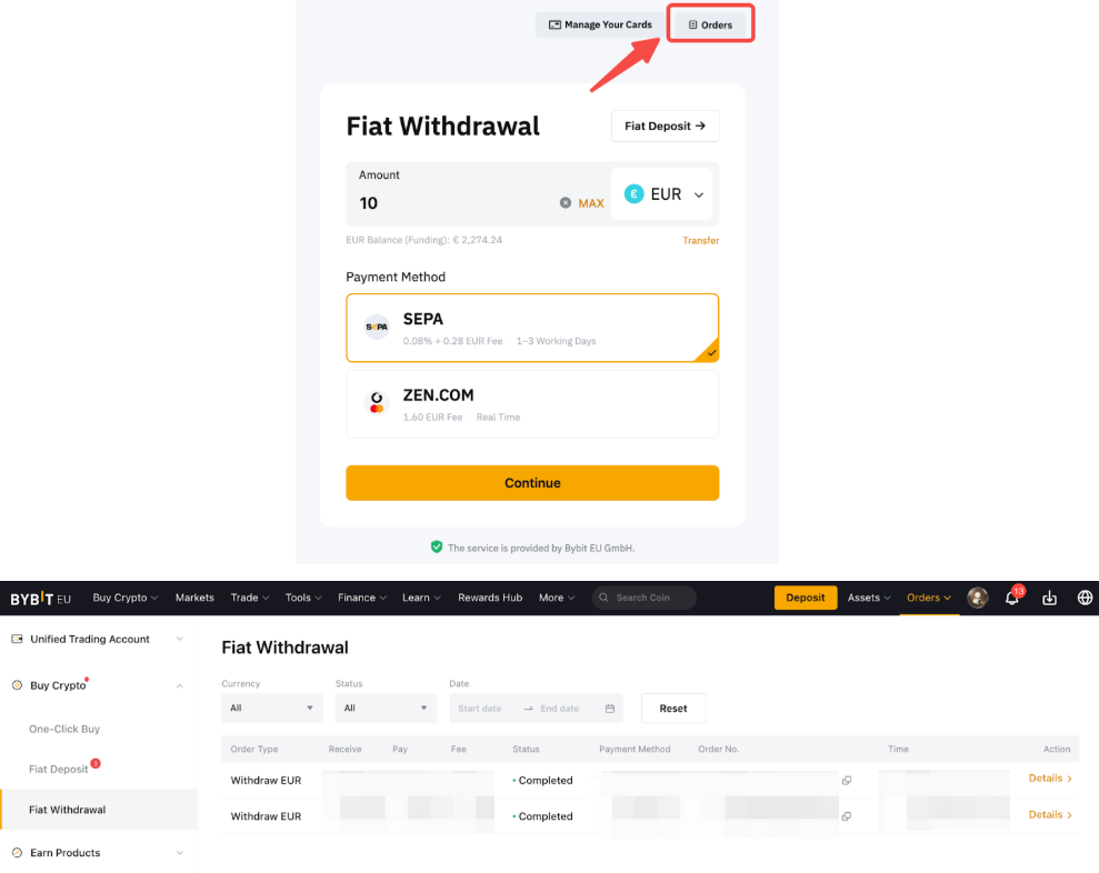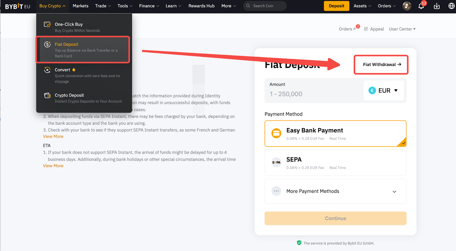Hier is een stapsgewijze handleiding voor het opnemen van fiduciaire valuta's uit Bybit EU.