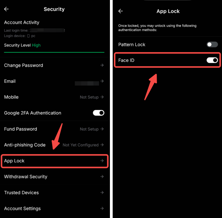Stap 2: Kies App Lock → Face ID of Vingerafdrukherkenning voor je biometrische verificatie.
