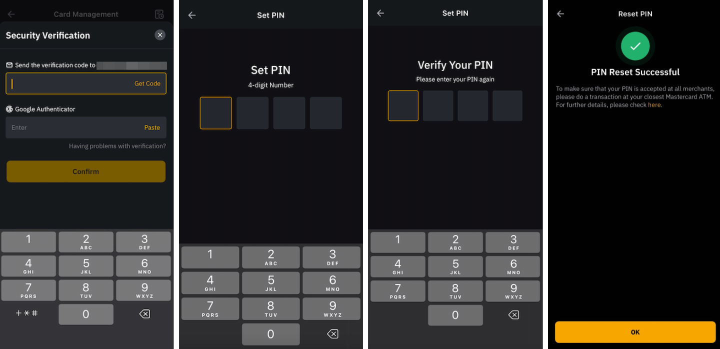 6. Bybit Card pincode opnieuw instellen