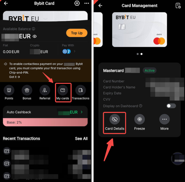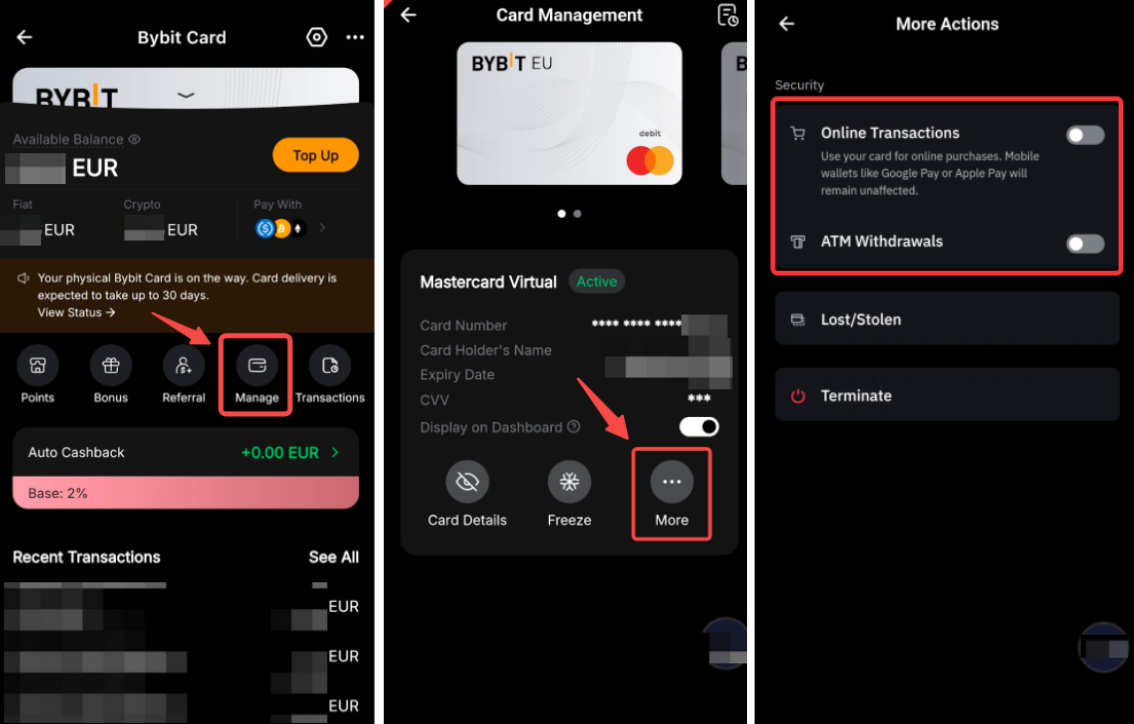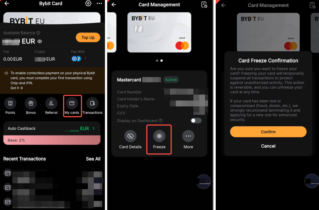 3. Bybit Card bevriezen/activeren na bevriezen