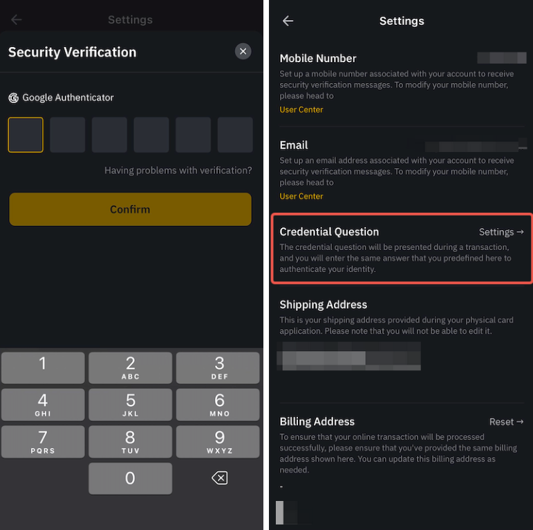 Stap 2: Nadat je je account hebt geverifieerd met 2FA, klik je op Instellingen onder Credential Vragen.