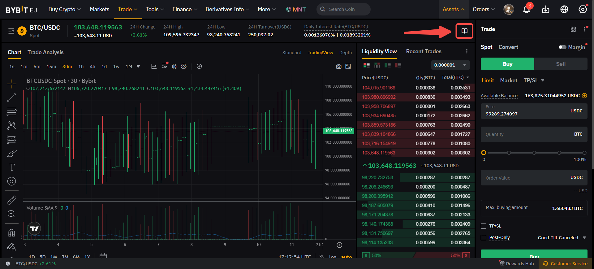 Para visualizar os detalhes de ativos em garantia e ativos passíveis de empréstimo, vá a uma página de Trading e clique no ícone do livro no canto superior direito do livro de ordens. Em seguida, clique em Dados de margem. Você poderá ver os ativos em garantia e passíveis de empréstimo com a respectiva ordem de liquidez e taxa de juros.