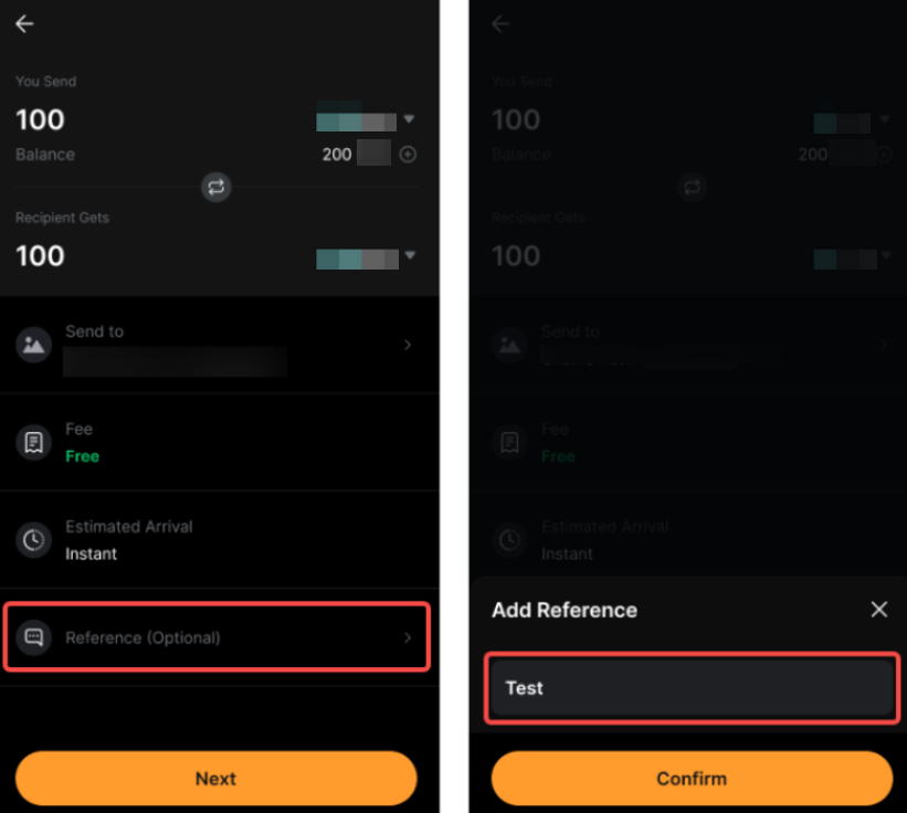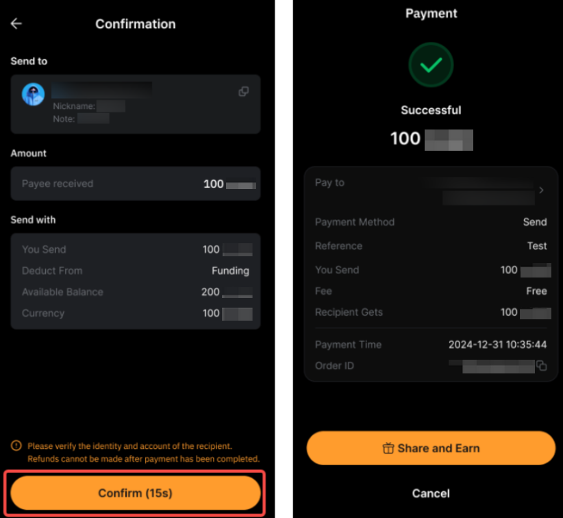 Passo 5: Toque Confirmar na página de confirmação para concluir a transação.