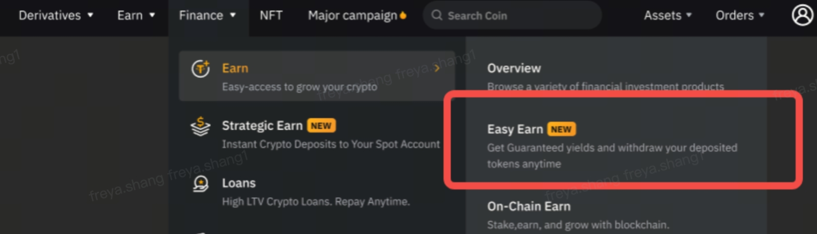 Opțiunea 2: Treci cu cursorul peste Ordine în bara de navigare și dă click pe Ordin Earn pentru o prezentare generală simplificată a ordinelor tale Earn.