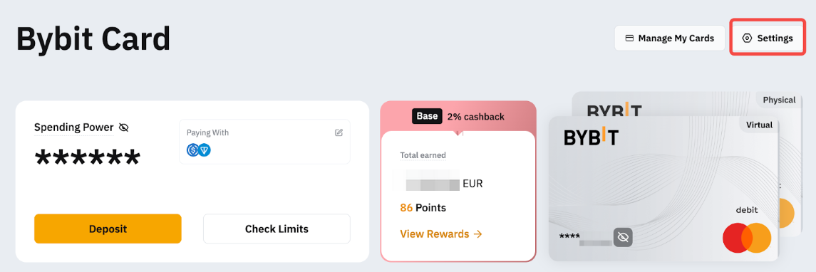 Step 1: Go to the My Bybit Card page and click on Settings.