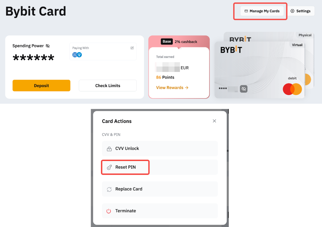 6. Reset Bybit Card PIN