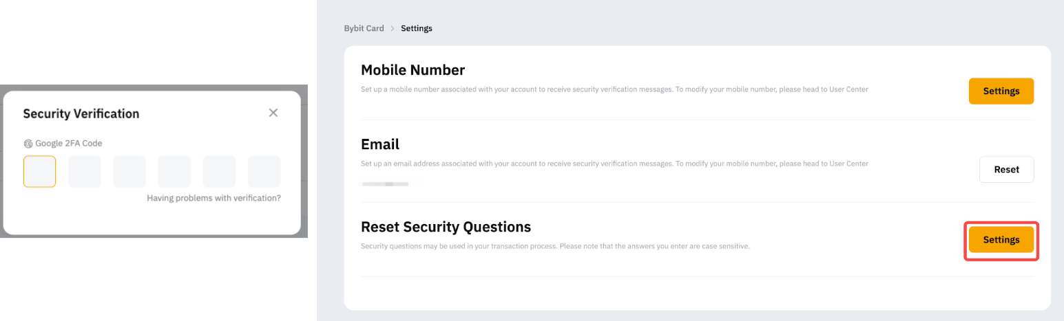 How to reset the Bybit Card security questions?